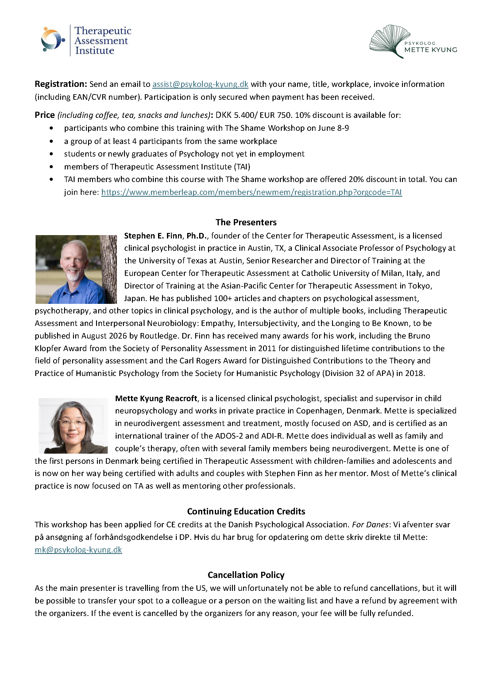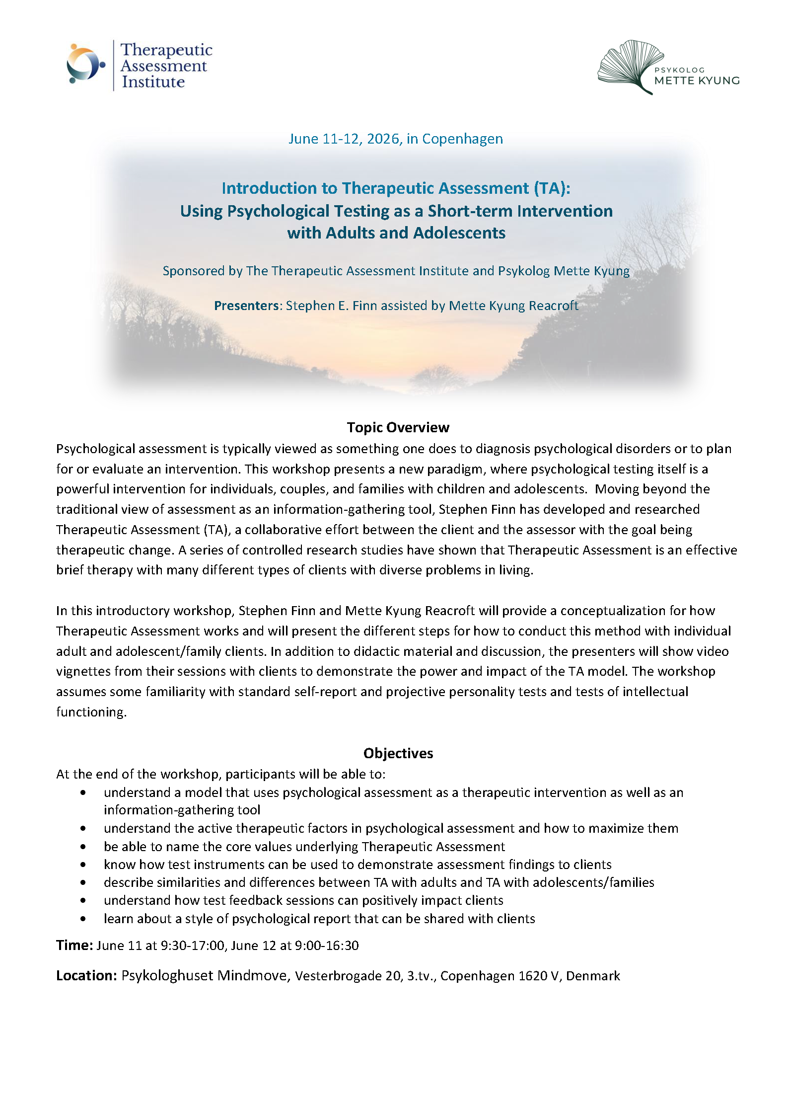Sponsored by The Therapeutic Assessment Institute and Psykolog Mette Kyung