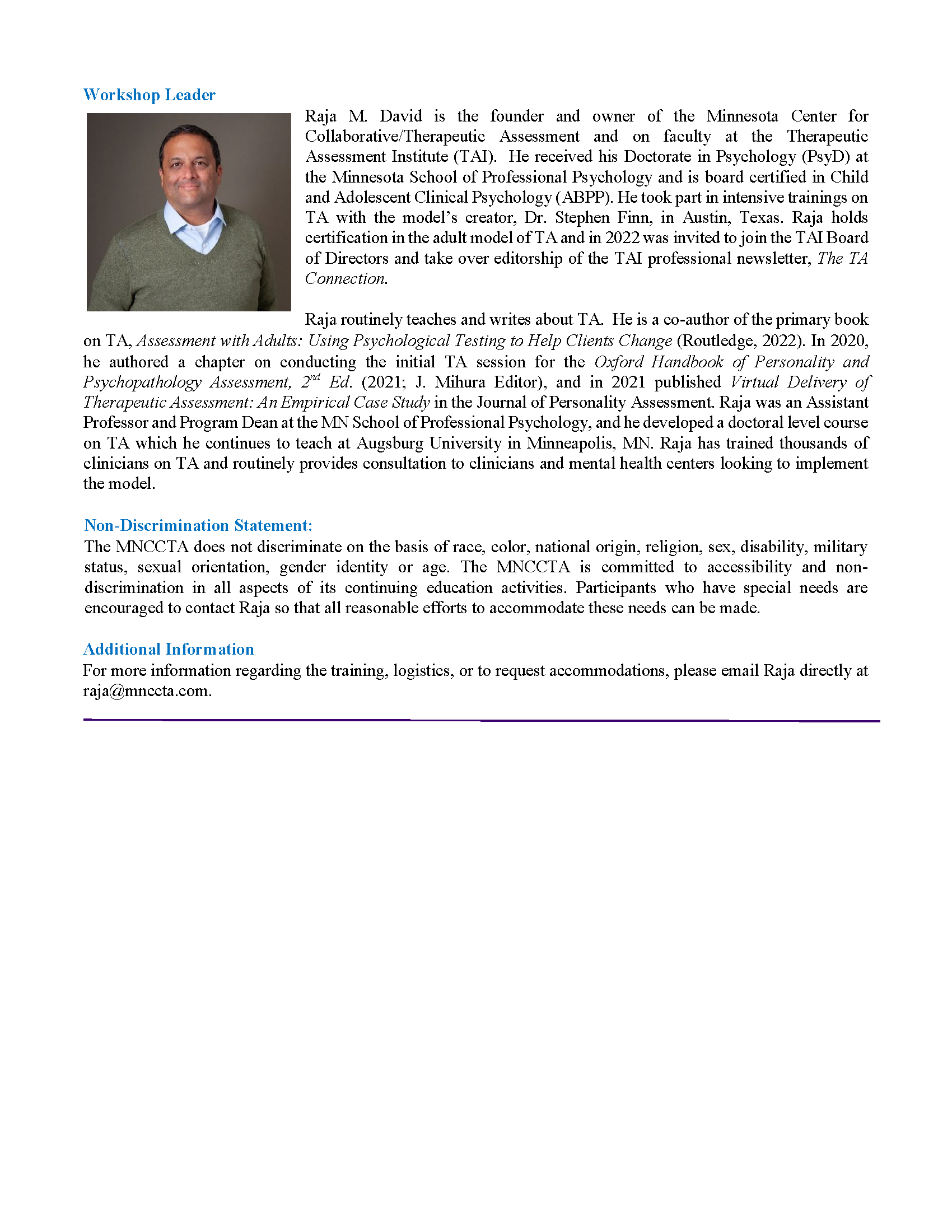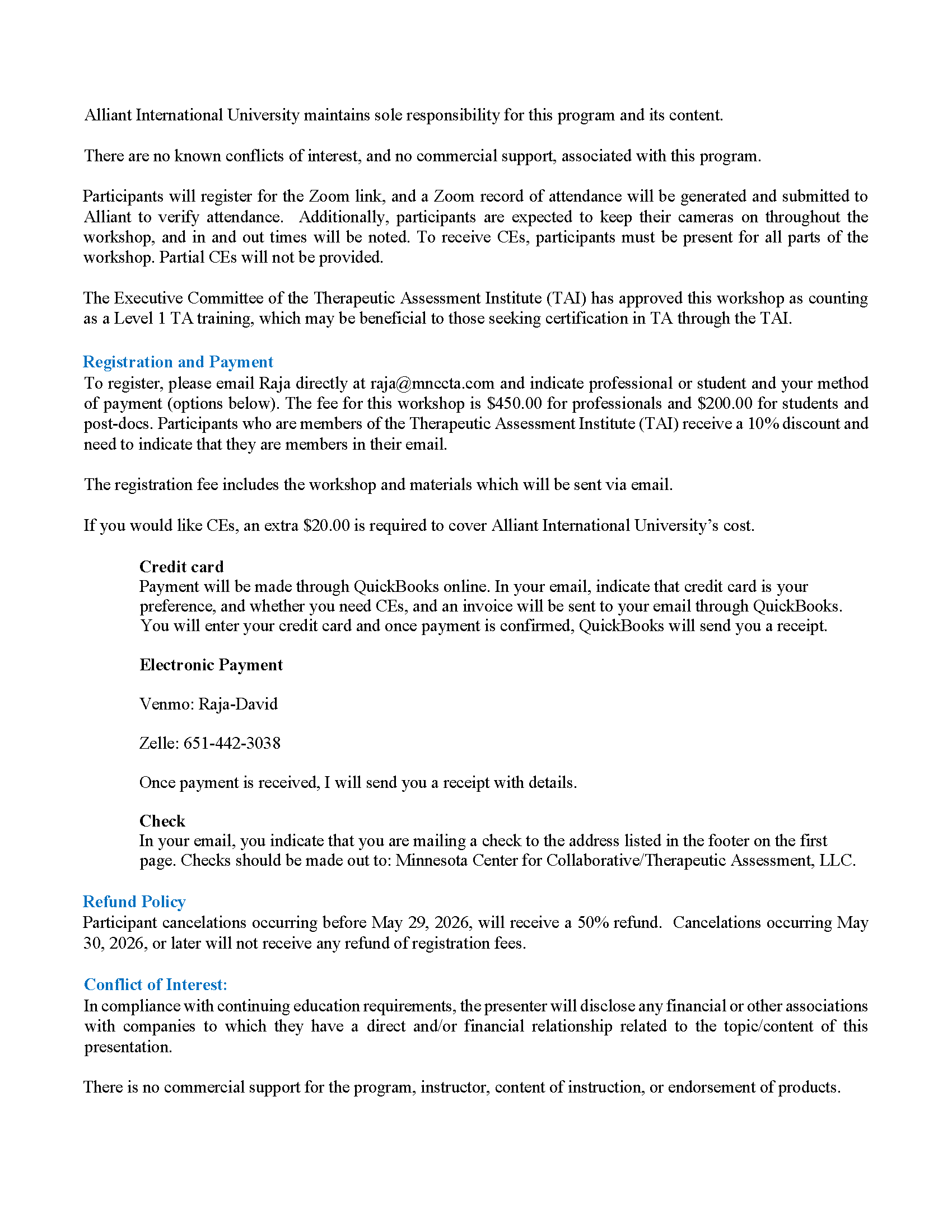 This two-day, 9-hour workshop is designed for professionals and graduate students interested in learning about the Therapeutic Assessment model developed by Stephen Finn and his colleagues.